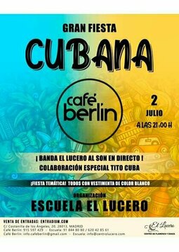 El próximo 2 de Julio os esperamos a todos en la sala café Berlín a las 21 h, en la Gran Fiesta Cubana!