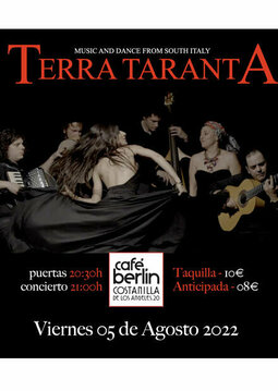 Una bailarina, una cantante y un grupo de músicos, todos ellos italianos afincados en Madrid, amantes de las tradiciones de sus abuelos, te harán descubrir múltiples variantes de la tarantella a través de melodías místicas, danzas frenéticas y ritmos hipnóticos.